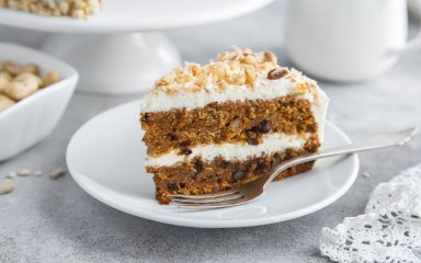 Благодаря пикантному вкусу специй, влажному тесту и бархатистому крему из маскарпоне этот морковный торт заслуживает особого внимания. Используйте грецкие орехи для более глубокого вкуса.