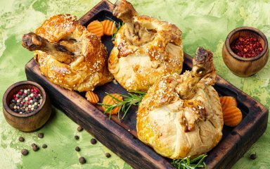 Мешочки из теста с куриными голенями — элегантно и просто