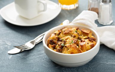 Эту легкую запеканку к завтраку можно приготовить из любых ингредиентов, которые есть у вас под рукой — сыра, овощей, мяса. Сам набор можно собрать накануне, а выпекать уже утром или приготовить утром, а съесть на ужин!