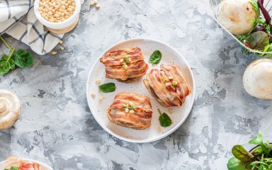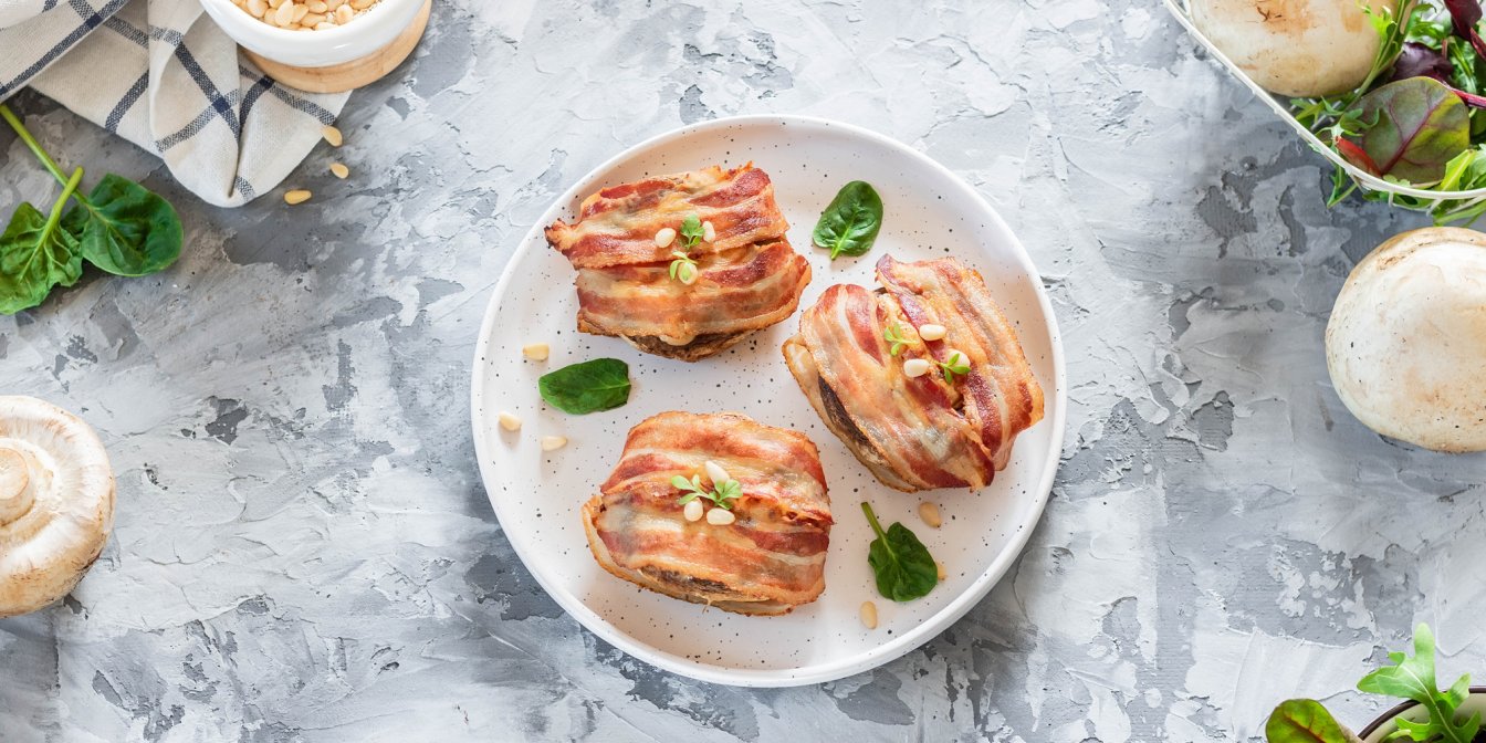 Любимые фаршированные грибы поднимаются на новый уровень, стоит только завернуть их в слайсы бекона. Просто, но тает во рту!