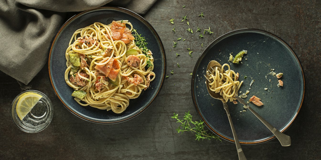 Вкусно и полезно: паста с копченым лососем и кабачками