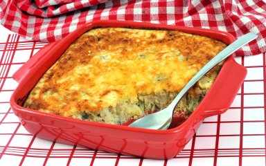 Форму смажьте маслом, посыпьте сухарями, равномерно выложите рыбно-картофельную массу и посыпьте тертым пармезаном. Форму поместите в разогретую до 180°С духовку на 15 минут до зарумянивания.