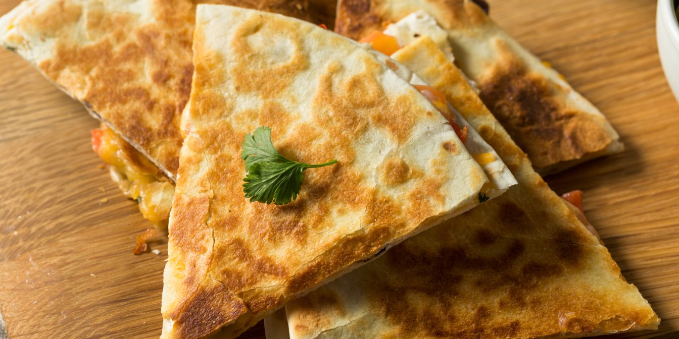 Вы очень часто могли видеть разные варианты начинок кесадильи — с овощами, мясом, грибами и бобовыми. Но традиционно кесадилья состоит из двух ингредиентов — из тортильи (пшеничной или кукурузной), сложенной пополам, и сыра.