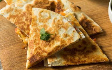 Чаще кесадилью поджаривают или запекают, но лаваш с сыром, приготовленный в микроволновке, не уступает по вкусу, а еще и значительно экономит время! Если у вас есть вдохновение и желание, в начинку можно добавить также помидоры, зелень и кукурузу. Мы предлагаем вам рецепт классической кесадильи с сыром и рекомендуем выбрать чеддер, потому что он имеет островатый вкус, который делает кесадилью более пикантной.