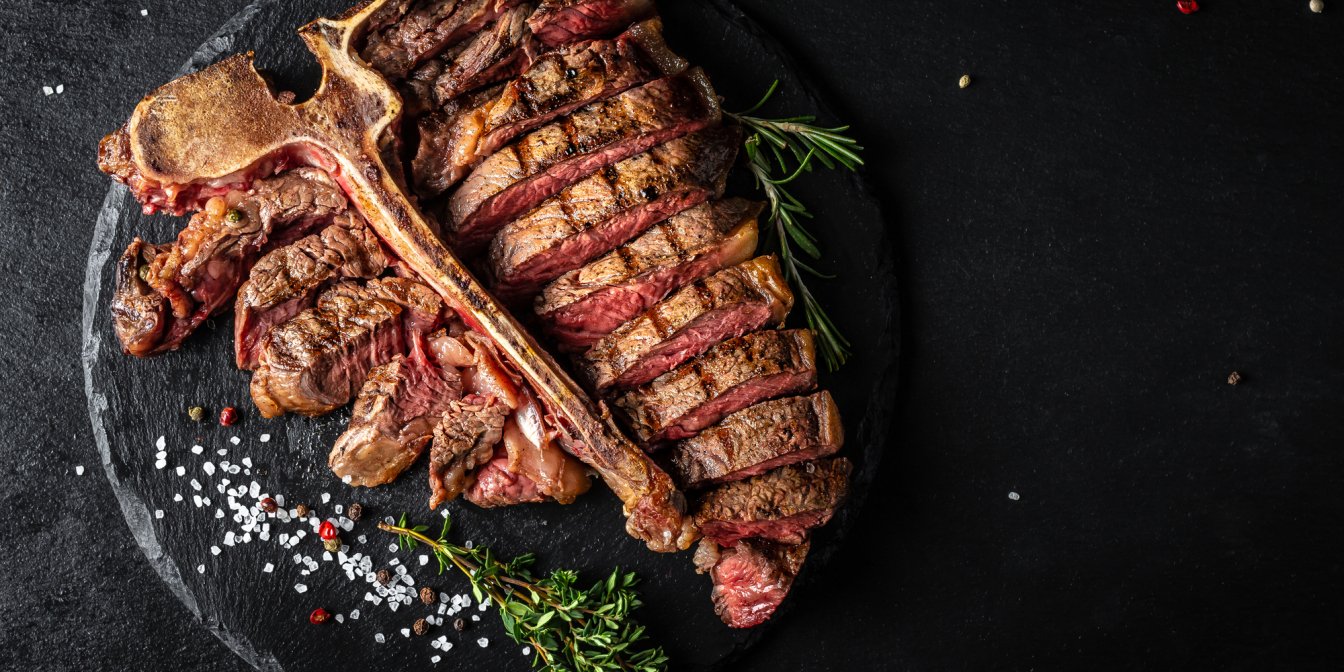 Согласно оригинальному рецепту, флорентийский бифштекс — это стейк Портерхаус из мраморной говядины.