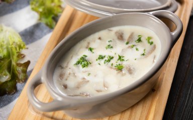 Чтобы грибной суп был густым и кремовым, молоко замените сливками любой жирности.