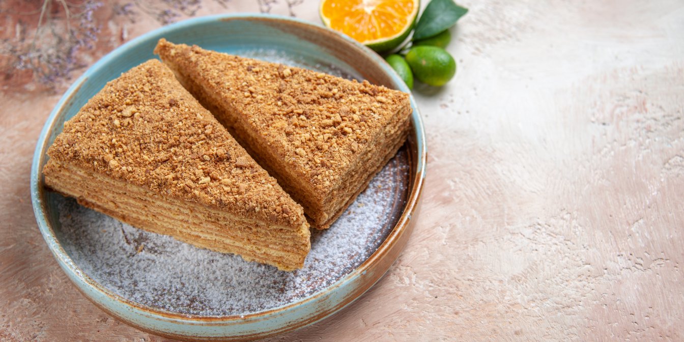 Для этого медовика с кремом нужно перемешать все ингредиенты, замесить тесто и сформировать шесть коржей. После выпечки их нужно перемазать нежным кремом и подождать, пока он пропитается.