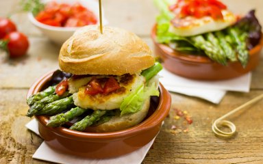 Почему бы не приготовить на второе легкий, ненавязчивый и вкусный гамбургер с курицей, спаржей и щепоткой сыра? Подготовьте листья салата, майонез с низким содержанием жира и булочки с отрубями. Немного времени, ну совсем чуть-чуть и вы уже счастливый обладатель вкусного обеда.