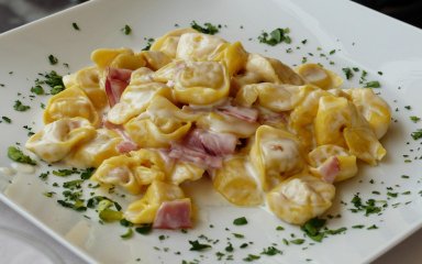 Тортеллини готовят с разными начинками: пармезаном, рикоттой, прошутто, мортаделлой и свининой. А подают с томатно-сливочным соусом, песто или оливковым маслом. А мы предлагаем вам попробовать тортеллини с сыром и шпинатом.