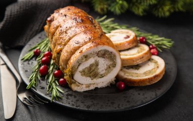 Блюда на Рождество: рулет из индейки с клюквой и орехами