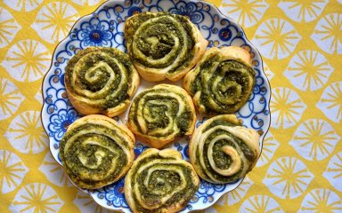 Подавайте пирог «Шпинатные розы» на обед со вкусным куриным бульоном от Джейми Оливера. Пирог имеет отличный вкус как в горячем виде, так и в холодном.