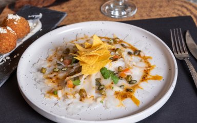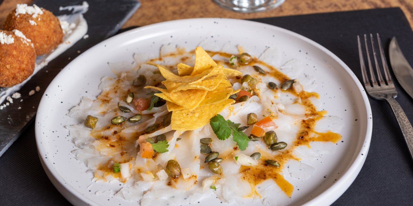 Карпаччо из трески с помидорами, луком и кукурузными чипсами начос — идеальная закуска, когда нужно поразить гостей, а времени на готовку мало. Она особенно понравится любящим сырую рыбу и причудливые сочетания.