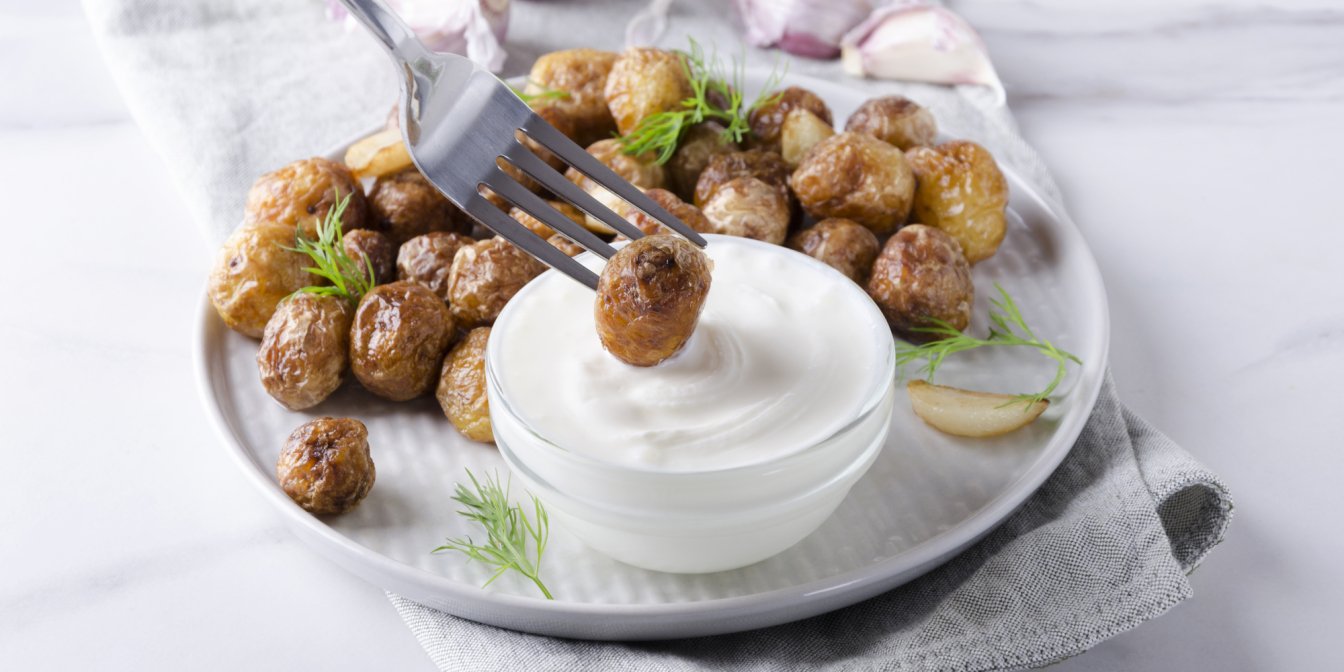 Он имеет более низкое содержание крахмала и кремовую текстуру, поэтому хорошо сохраняет форму при приготовлении. Кожура у молодого картофеля тоненькая и нежная, поэтому не нужно тратить время на чистку. Картофель и соус из мягкого сыра, огурца, укропа и сметаны образуют идеальную пару для ужина.