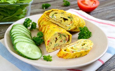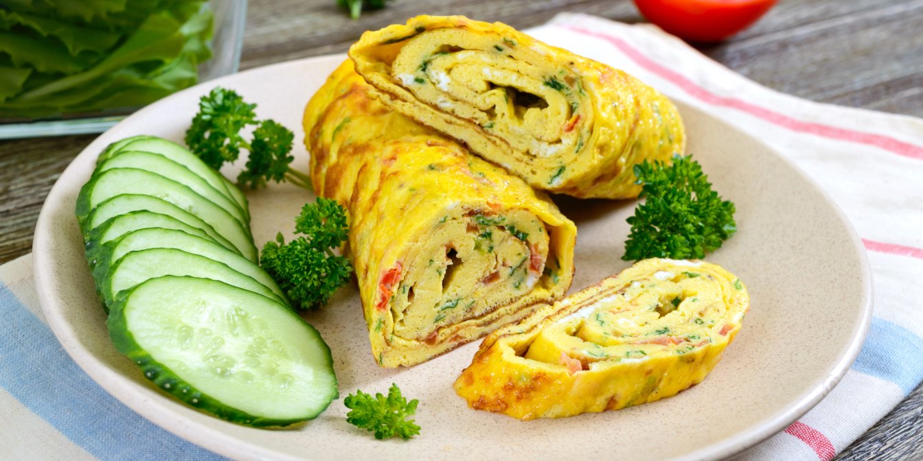 А, если коротко — это самый обычный омлет, который закатывается в рулет на горячей сковороде, а затем нарезается на кусочки как роллы. Для него вам понадобятся только яйца и приправы, но подойдет буквально все: кабачки, шпинат, капуста, морковь, лук, сыр, бекон или любые мясные деликатесы. Начинка может быть любой.