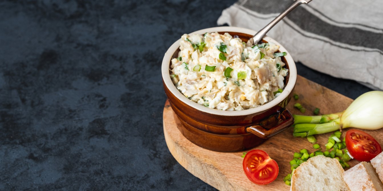 Эту намазку можно смело назвать мультифункциональной, ведь кроме перекуса она отлично подойдет и в качестве завтрака, как самостоятельный салат и даже станет отличным дополнением праздничного стола. Яичная намазка имеет очень неожиданный вкус, ведь лук-шалот, эстрагон и петрушка придают закуске горьковатый привкус и неповторимый аромат!