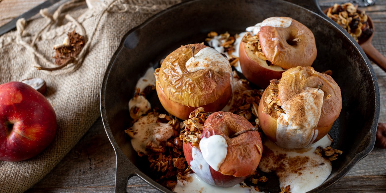 Запеченные яблоки — это не только отличный вариант десерта, они еще могут стать полноценным завтраком! Нужно просто добавить к начинке овсянку!