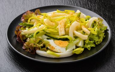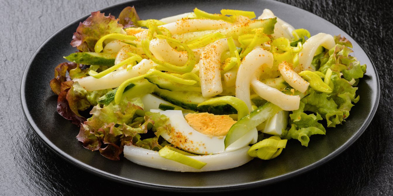 Превратите отварных кальмаров с куриными яйцами и авокадо в блюдо, которое может смело получить звание «блюдо недели».