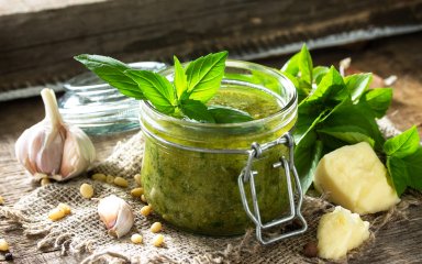 Этот вкусный ароматный соус готовится из руколы, петрушки, укропа, базилика, масла, винного уксуса и приправ. Он сделает вкуснее любое блюдо — от кусочка рыбы на пару до изысканного стейка. А можно просто намазывать на хлеб.