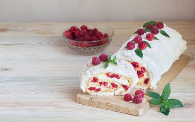 Как бы там ни было, мы благодарны изобретателю за этот замечательный десерт, из которого выходит еще и прекрасный рулет. Используйте кисловатую начинку, чтобы сбалансировать сладкий вкус меренги. Мы, например, очень любим сочетание малины и лимонного курда — рулет с ними получается просто ошубенный!