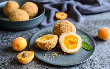 Этот десерт готовится из абрикосов, покрытых мягким и нежным творожным тестом, украшенным сладкой посыпкой из панировочных сухарей. Для приготовления венских кнелей с абрикосами можно использовать не только творожное, но и картофельное тесто. Можно менять и начинку — вместо абрикосов брать сливы или клубнику.