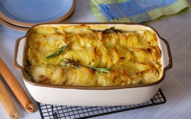 Тонко нарезанный картофель, куриный бульон и сыр, тщательно выложенные слоями. — это настоящая кулинарная магия.
