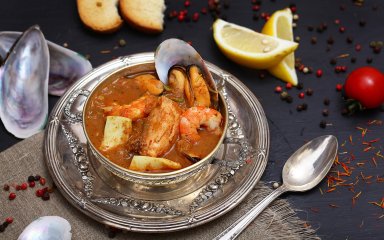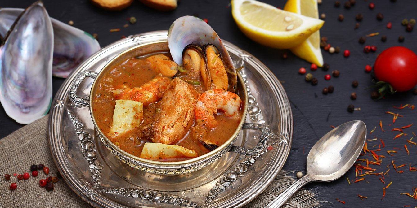 Французский многокомпонентный рыбный суп буйабес перенесет вас на средиземноморское побережье и подарит летнее настроение.