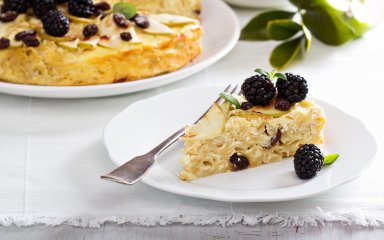 Есть бесконечные вариации на тему кугеля из лапши. Его можно сделать солеными или сладкими, с начинкой или без, с сухофруктами, орехами или специями. Мы рекомендуем попробовать кугель из лапши с яблоками и ежевикой.