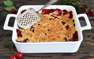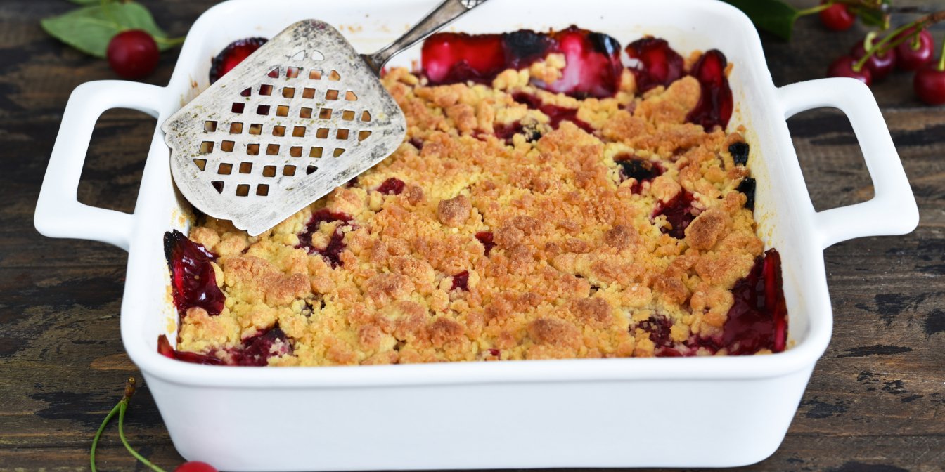 Пирог сохранил свою извечную форму и до настоящего времени. Не имеет значения, какая у вас начинка — будь то вишневый коблер, яблочный или клубничный — форма выпечки всегда остается одинаковой. SHUBA предлагает рецепт коблера с вишней, согласно которому можно испечь пирог как с вишней, так и с черешней.