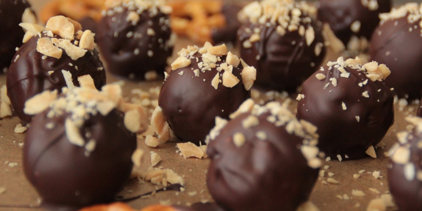 Для глазури растопите шоколад, соедините с кусочками масла и перемешайте. Каждый шарик накольте на шпажку, окуните в шоколадную глазурь и оставьте до полного застывания.