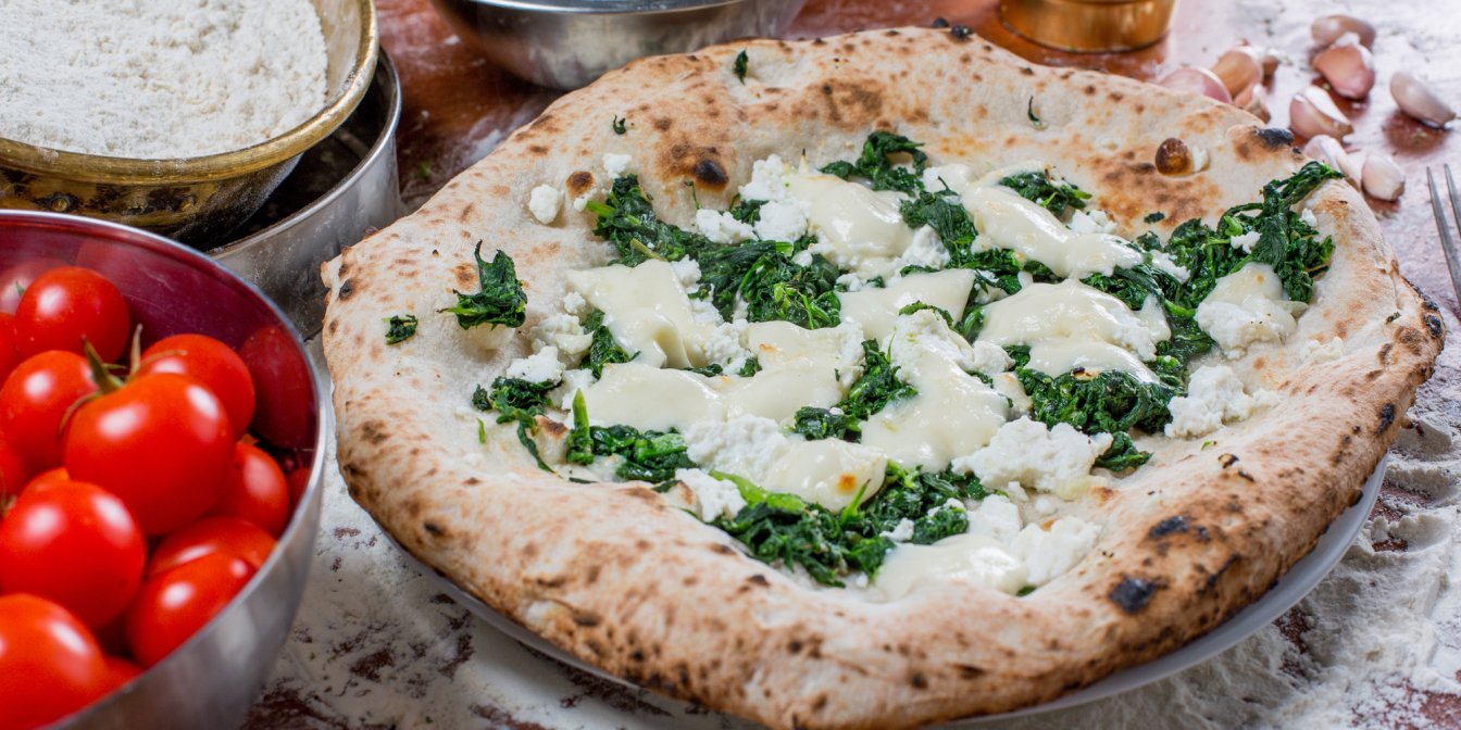 Что такое белая пицца, или пицца «Бьянка»? Это мучное изделие в итальянском стиле без томатного соуса, покрытое белым сыром. Пицца обычно состоит из теста, оливкового масла, чеснока, сыра, соли и иногда начинки, включающей шпинат, помидоры и травы. Изюминкой белой пиццы является сыр рикотта, который часто дополняют пармезаном и моцареллой.