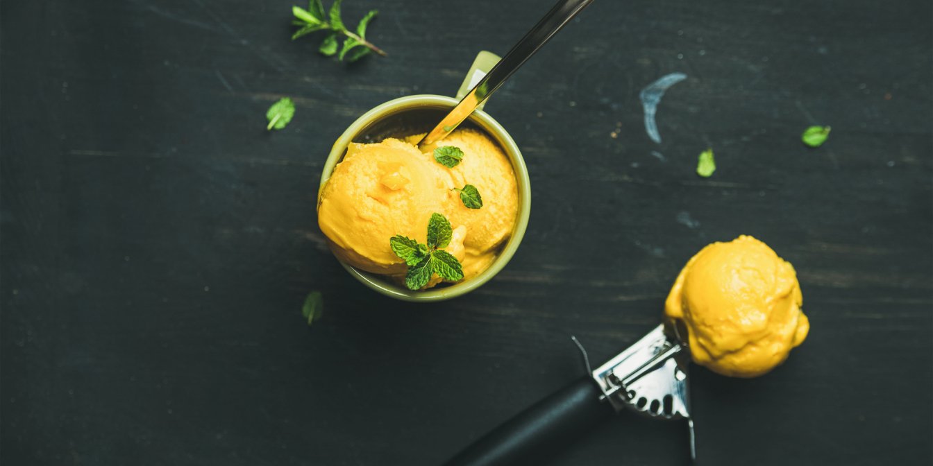 То, что нужно в летнюю жару, — холодный манговый сорбет с лаймом и щепоткой имбиря. Такой десерт дарит наслаждение и прохладу — эффект что надо!
