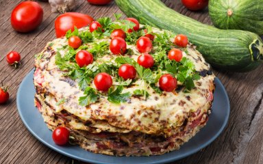Несмотря на то, что кабачковый торт — это трудоемкое блюдо, его легко приготовить, если вы будете следовать нашей инструкции шаг за шагом. Через час у вас получится вкусный закусочный пирог с помидорно-кабачковыми коржами и грибной начинкой.