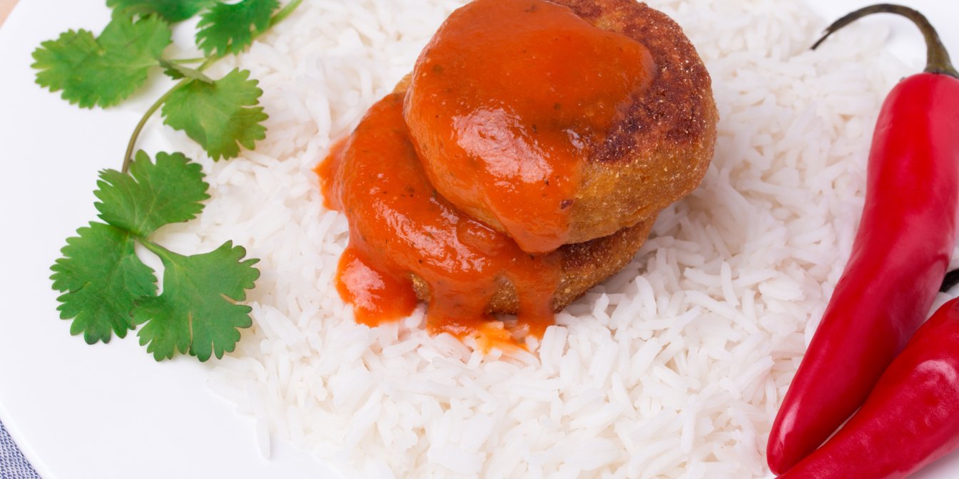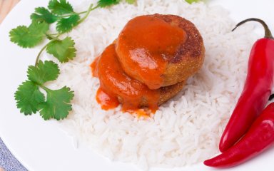 Эти нутовые котлеты очень похожи на знаменитый фалафель, но немного мягче по текстуре. Они готовятся из смеси нута, муки, яйца, зелени и специй, затем пропитываются насыщенным красным соусом из томатного сока, чили и масла. Обратите внимание, что мы не просто поливаем котлеты томатным соусом, но и тушим в нем, чтобы сделать их еще более мягкими.
