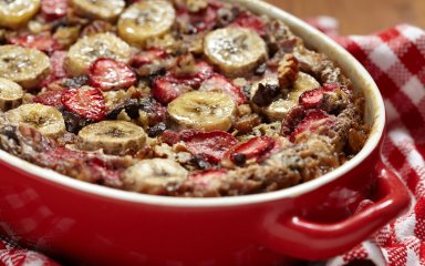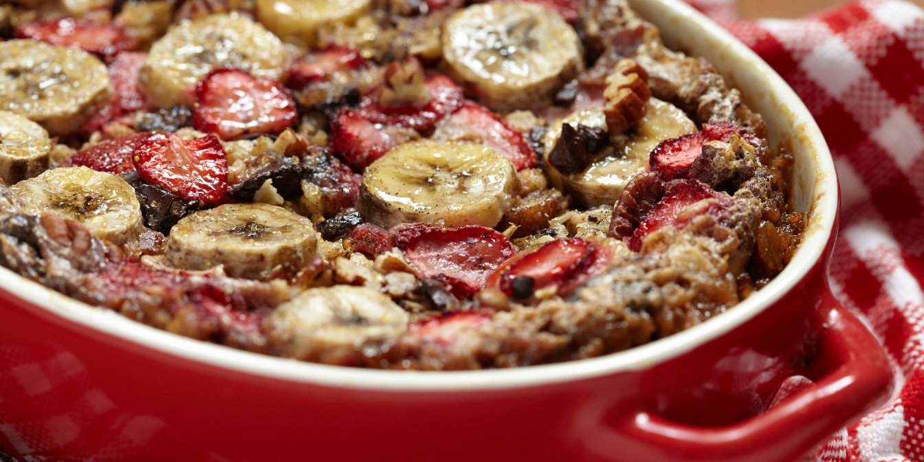Для волшебного завтрака: запеченная овсянка с клубникой и бананами