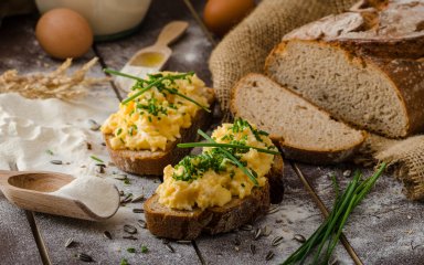 Этот бутерброд, приготовленный со сливочным, насыщенным желтками салатом, поданный на ржаном хлебе, станет отличным вариантом питательного завтрака.