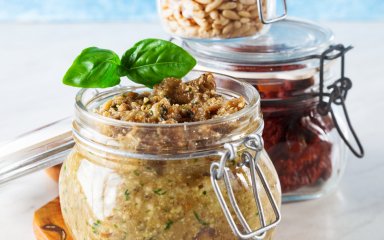Выложи песто в сухую чистую банку, закрой и храни в холодильнике.