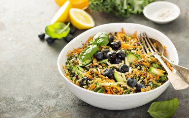 Великолепный салат с авокадо, черникой и киноа насыщен растительным белком и идеально подходит для летних обедов, вечеринок и пикников.