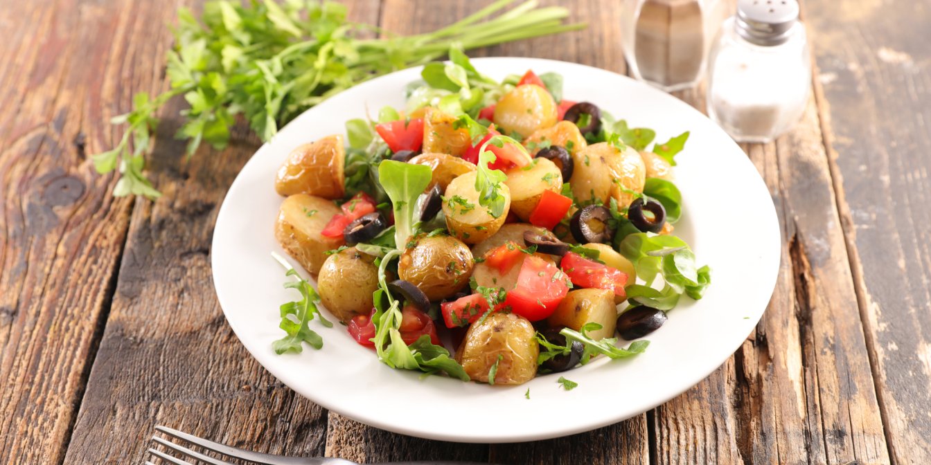 Картофельный салат года: запеченный картофель с томатами в маринаде