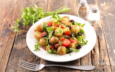 Попробуйте подать салат с картофелем и маринованными помидорами вместе с бараньим шашлыком — эти вкусы могут стать хитами лета!