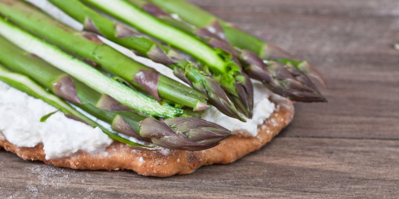 Индийский хлеб наан, сделанный из муки, дрожжей, яйца, кефира и молока, на самом деле является идеальной основой для любых экспериментов. Эта лепешка просто создана для того, чтобы намазать ее рикоттой и украсить спаржей!