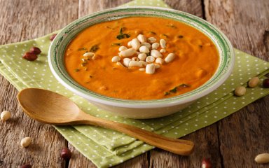 Уютный и пряный суп из батата и арахиса