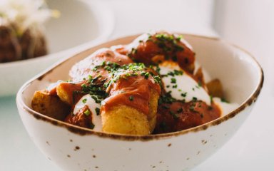 Известное в Испании блюдо делают из запеченного хрустящего картофеля, который подают с острым томатным соусом, айоли и гуакамоле. Картофель с сальсой брава — доступный, бюджетный и более полезный, чем обычный картофель фри, который жарят в большом количестве масла.