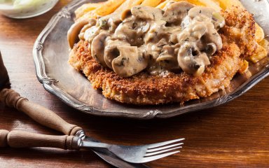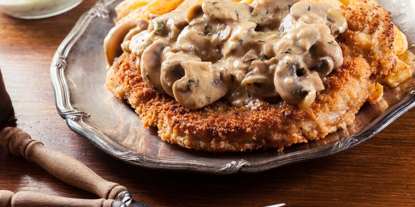 Если ты любишь хорошо прожаренный кусок свинины в аппетитной панировке, то этот рецепт точно для тебя. В Германии такое блюдо называют шницелем, а его особый вариант — охотничий шницель (Jägerschnitzel) — подают с нежным грибным соусом. Соус готовится на основе шампиньонов, лука и сметаны, хотя по желанию сметану можно заменить на томатную пасту.