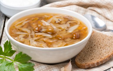 Подавайте этот легкий суп из капусты с кусочком свежеиспеченного домашнего хлеба.