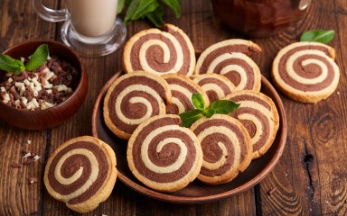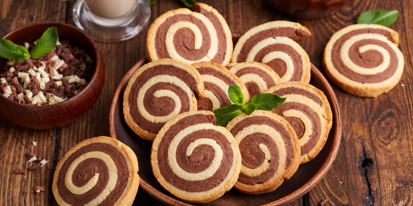 Эти эффектные сладости из двухцветного теста покорят и детей, и взрослых. Их очень легко приготовить дома, они делаются без использования форм и имеют легкий вкус ванили и какао. В результате вы получите мягкое, но хрустящее печенье, которое так приятно погружать в молоко и есть на завтрак.