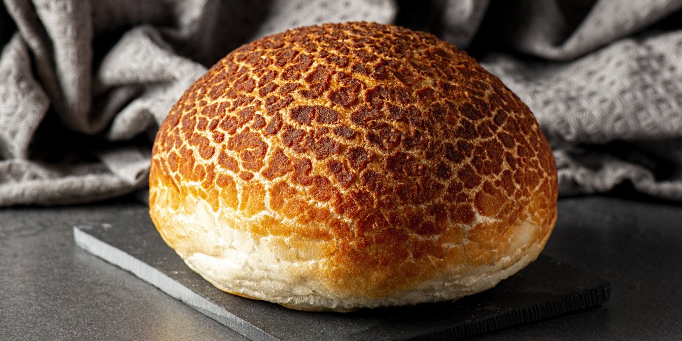 Как же появляется столь интересная корочка? Все благодаря рисовой пасте, которой покрывают тесто перед выпеканием. Дело в том, что рисовая мука не содержит глютена, поэтому когда хлеб поднимается и увеличивается в духовке, рисовая паста не изменяет размер, она высыхает и трескается, образуя характерные пятна.