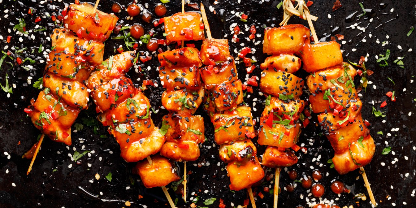 Сочный гавайский куриный шашлык с ананасом, луком и красным перцем идеально подходит для летних развлечений. Маринованные и глазированные сладким соусом кусочки курицы — это рецепт, который понравится всей семье.