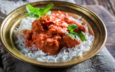 Чтобы снизить градус, советуем подавать куриное карри мадрас с рисом, нааном и чатни из манго.