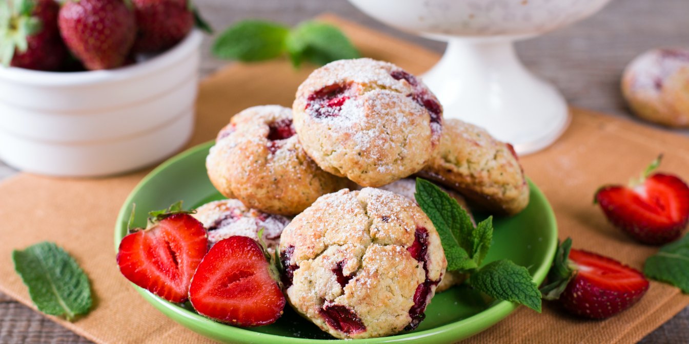 SHUBA советует ложкой насыпать муку в мерную чашку, чтобы получить нужное количество и печенье не получилось слишком грубым. Аккуратно измельчите замороженную клубнику на кусочки, а не в порошок. Можно ли использовать свежую клубнику? Мы бы не рекомендовали! В свежей клубнике слишком много влаги. Лучше подморозьте ягоды перед приготовлением.