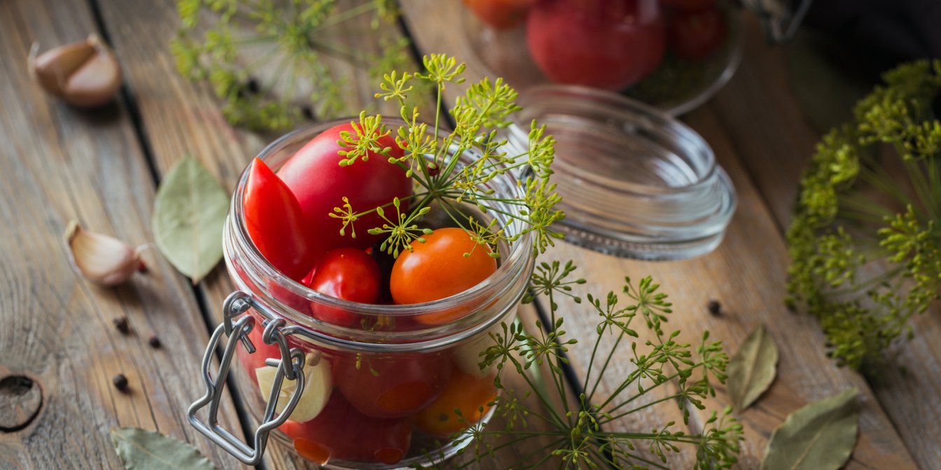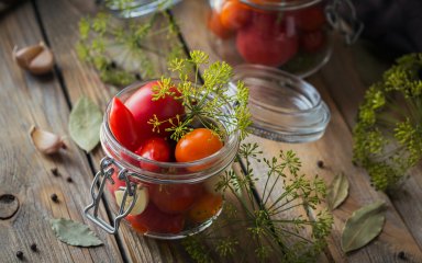 Для этого рецепта не требуются дополнительные пряности, зелень, перец, чеснок. Достаточно главных ингредиентов — томатов и перца, соли, воды, сахара и уксуса. Если сушеные томаты уже ждут вас в кладовке — приготовьте консервированные с перцем!